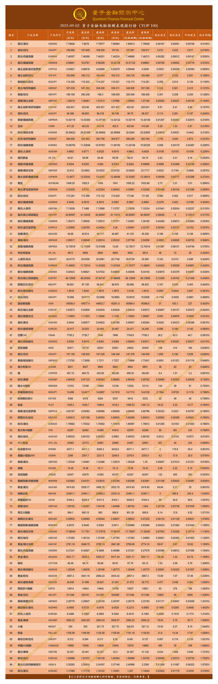 2025-09-02 量子金融电脑预测表现排行榜