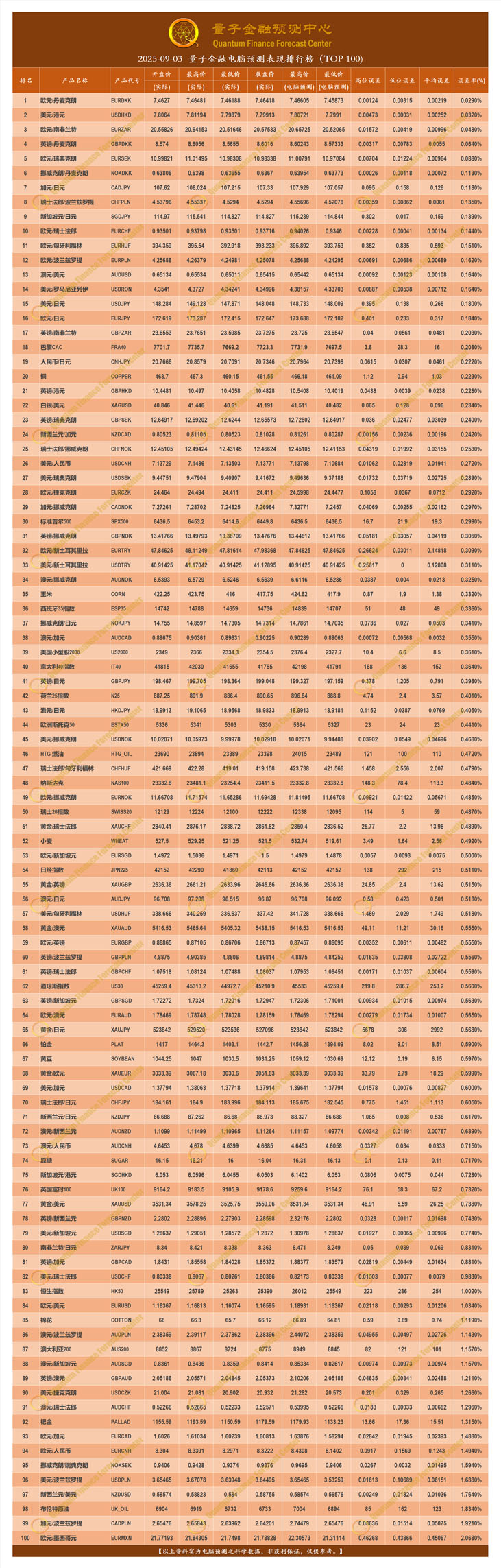 2025-09-03 量子金融电脑预测表现排行榜