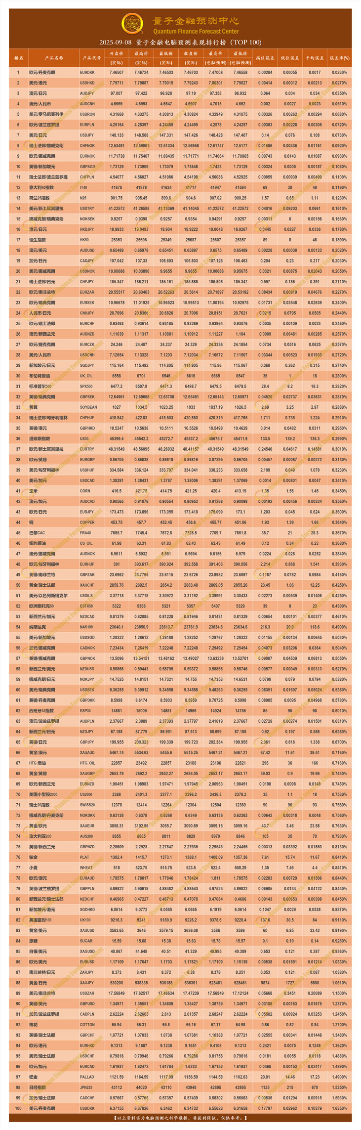 2025-09-08 量子金融电脑预测表现排行榜