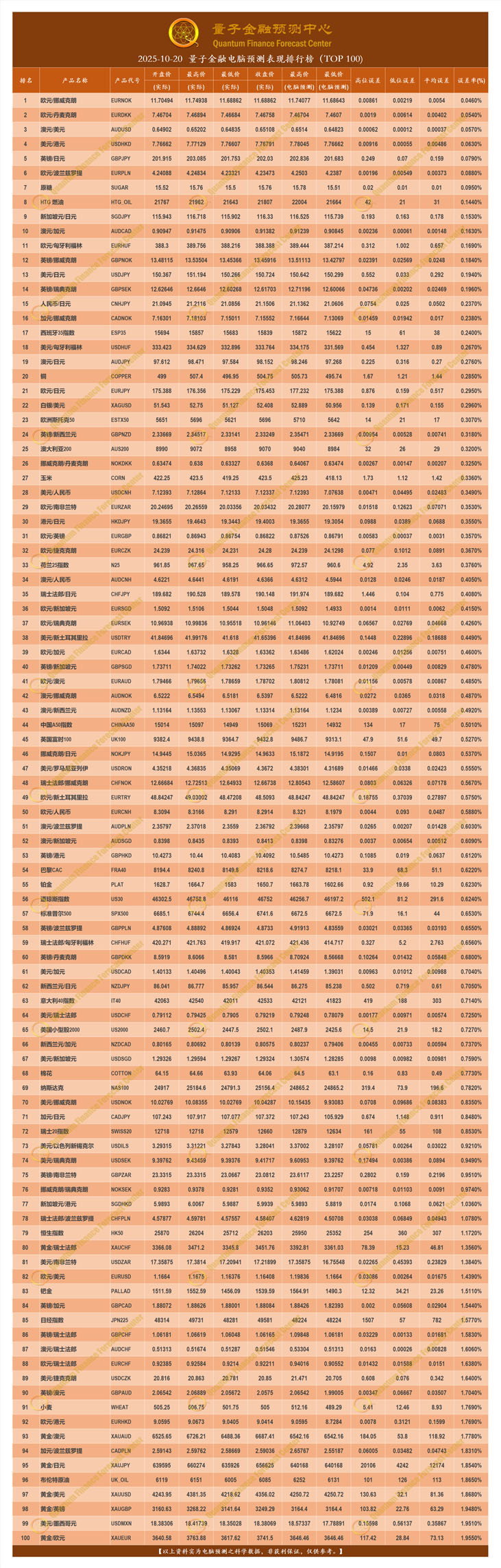 2025-10-20 量子金融电脑预测表现排行榜