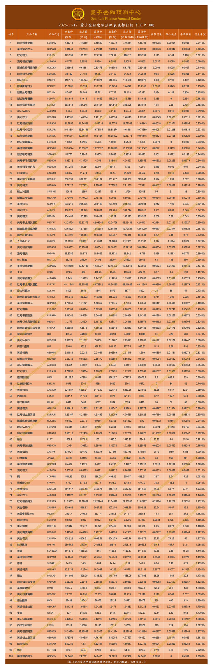 2025-11-17 量子金融电脑预测表现排行榜