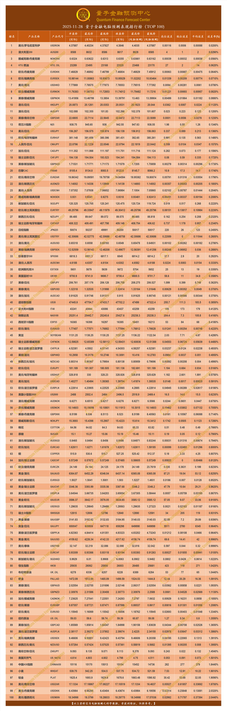 2025-11-28 量子金融电脑预测表现排行榜