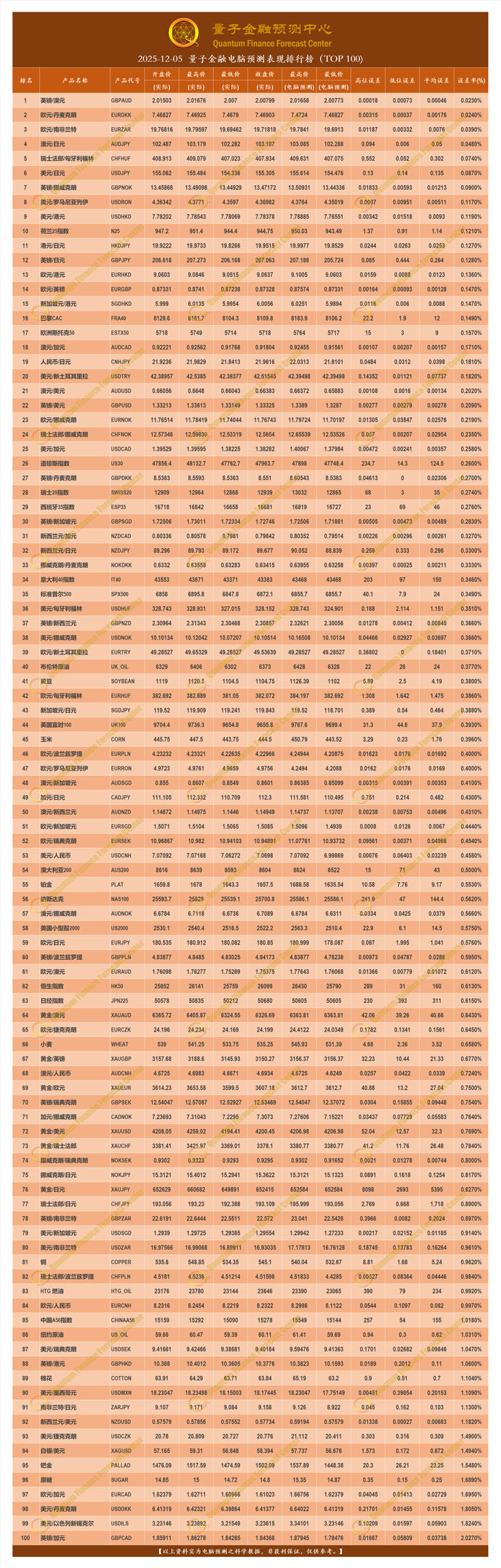2025-12-05 量子金融电脑预测表现排行榜