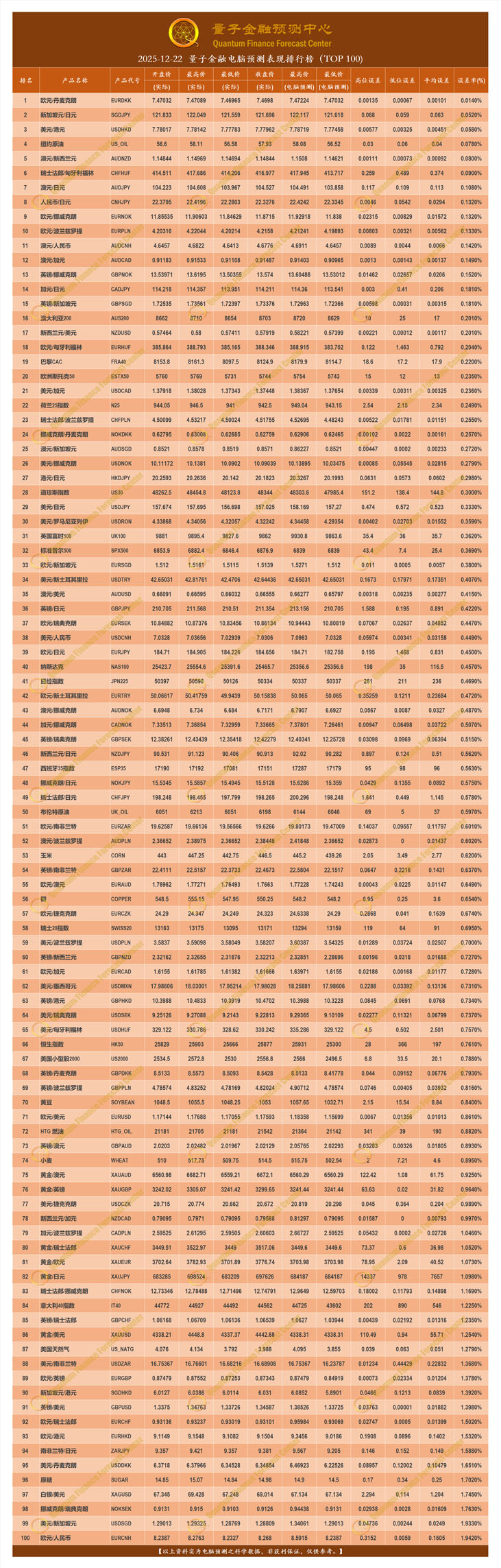 2025-12-22 量子金融电脑预测表现排行榜