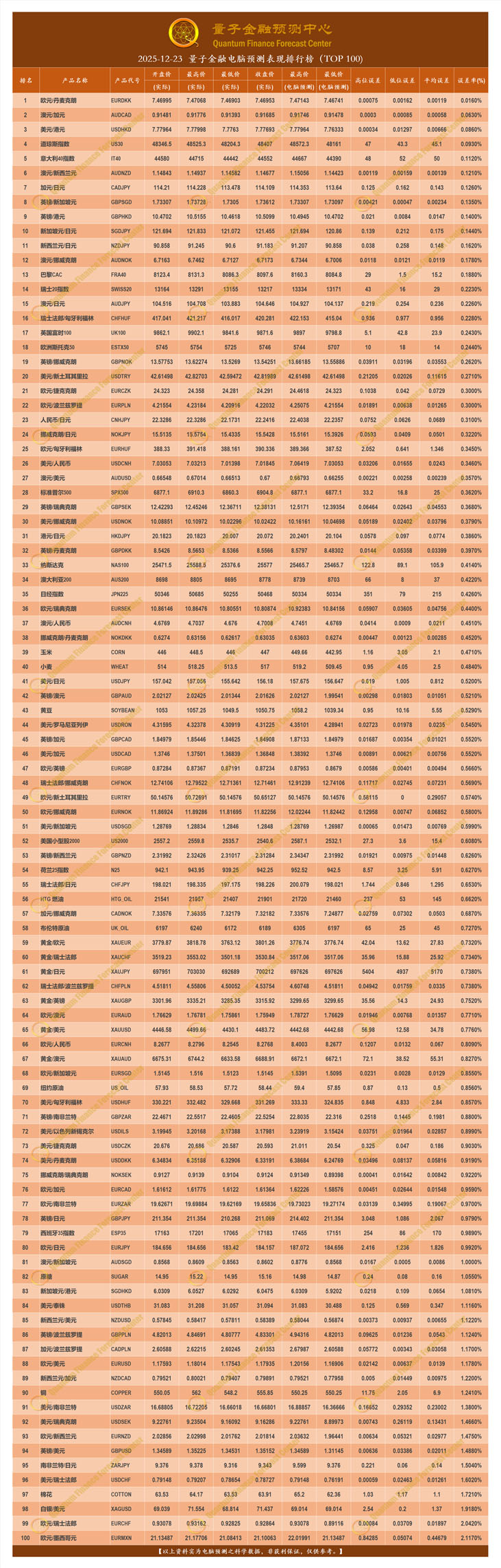 2025-12-23 量子金融电脑预测表现排行榜