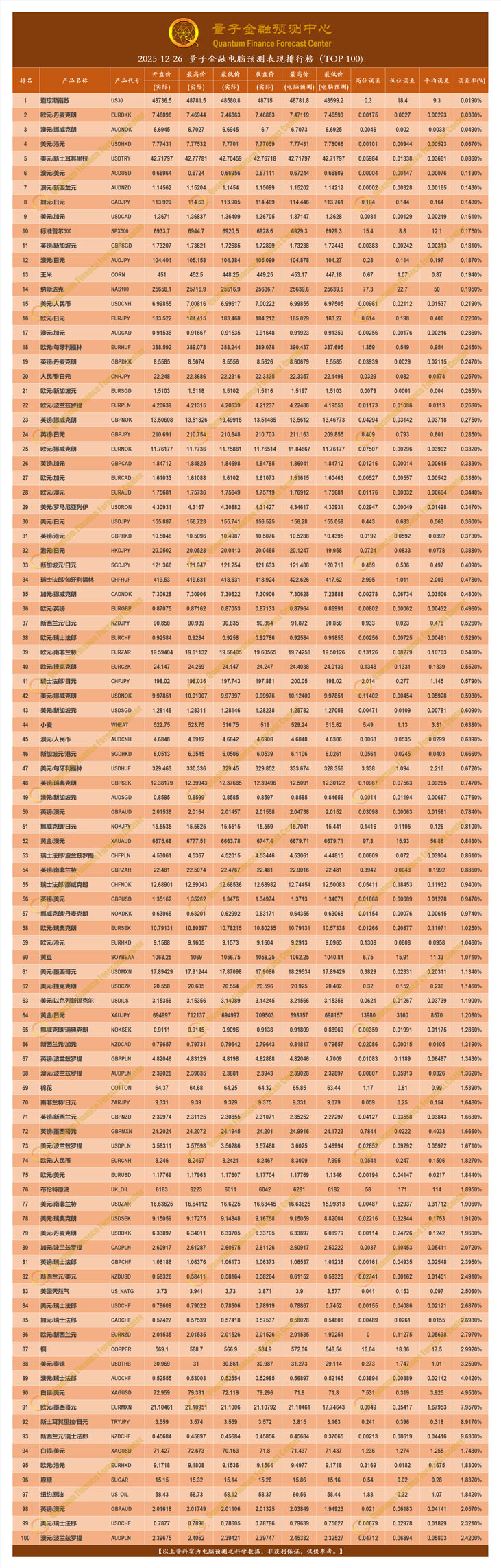 2025-12-26 量子金融电脑预测表现排行榜