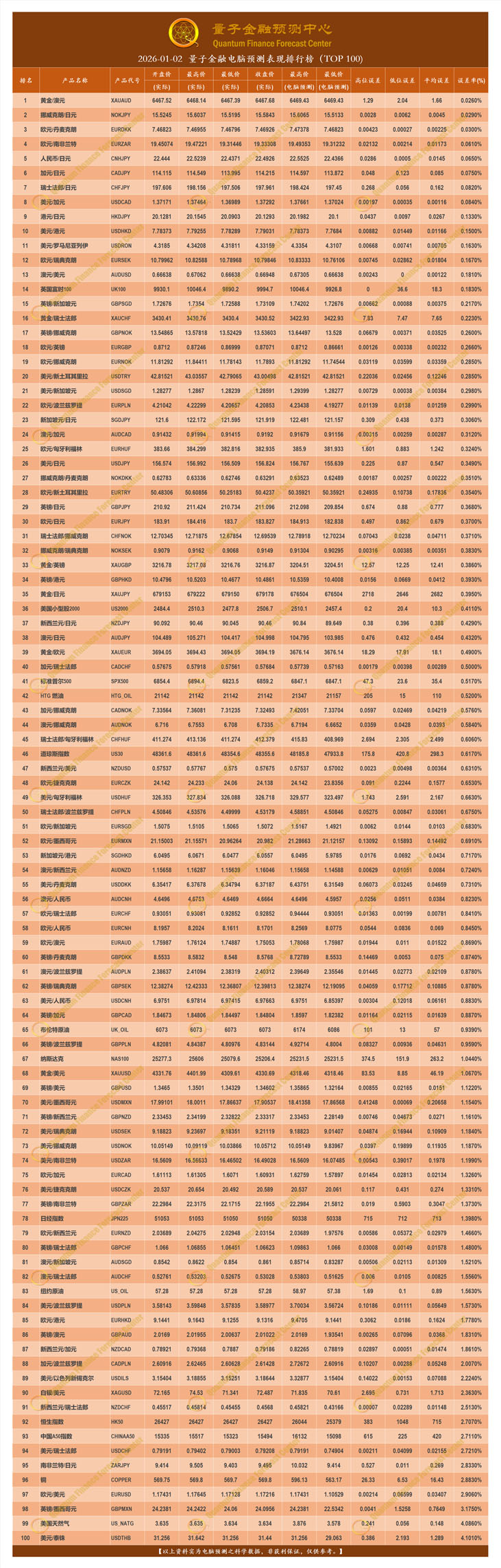 2026-01-02 量子金融电脑预测表现排行榜