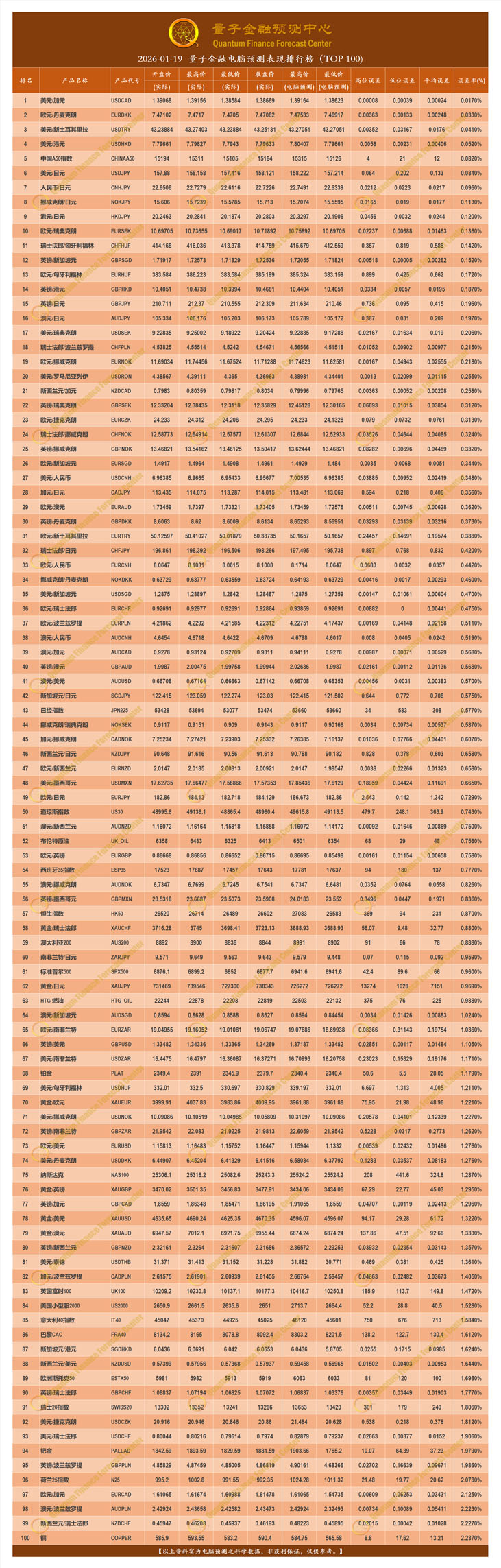 2026-01-19 量子金融电脑预测表现排行榜