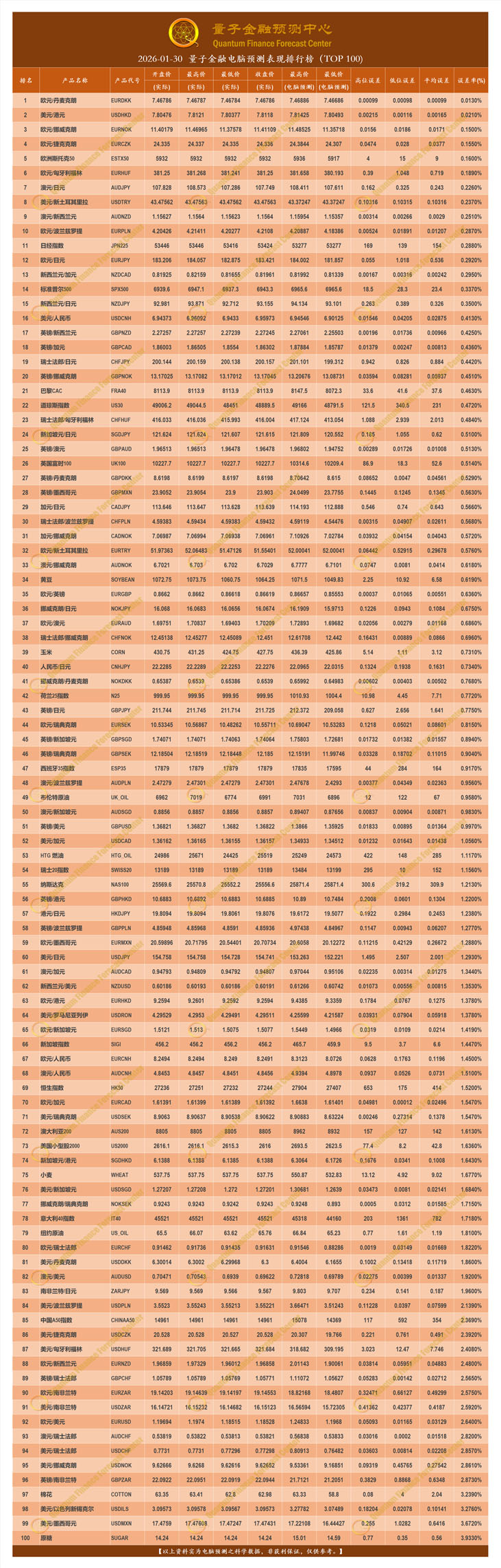 2026-01-30 量子金融电脑预测表现排行榜