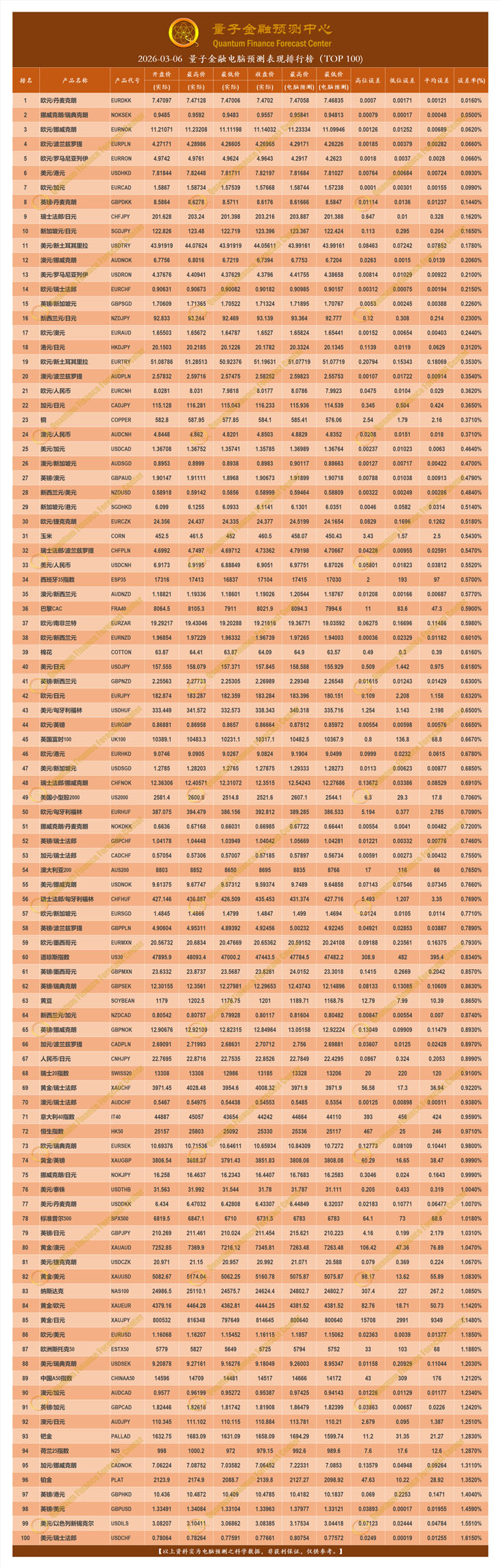 2026-03-06 量子金融电脑预测表现排行榜