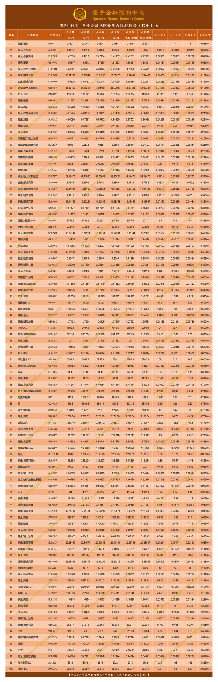 2026-03-10 量子金融电脑预测表现排行榜