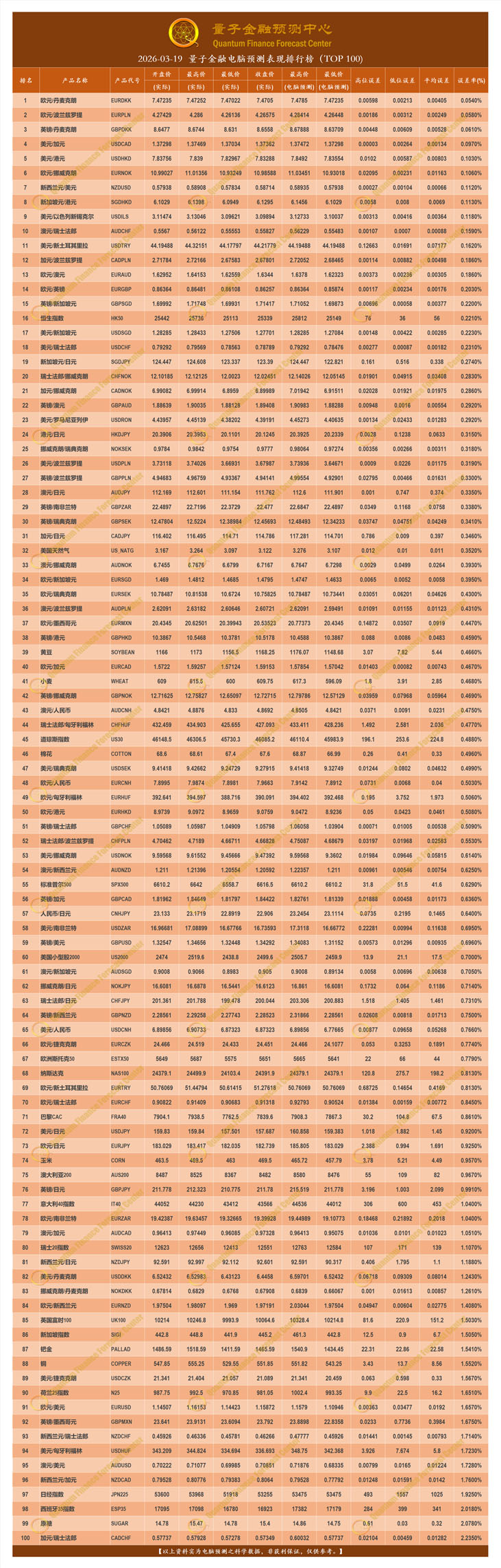 2026-03-19 量子金融电脑预测表现排行榜