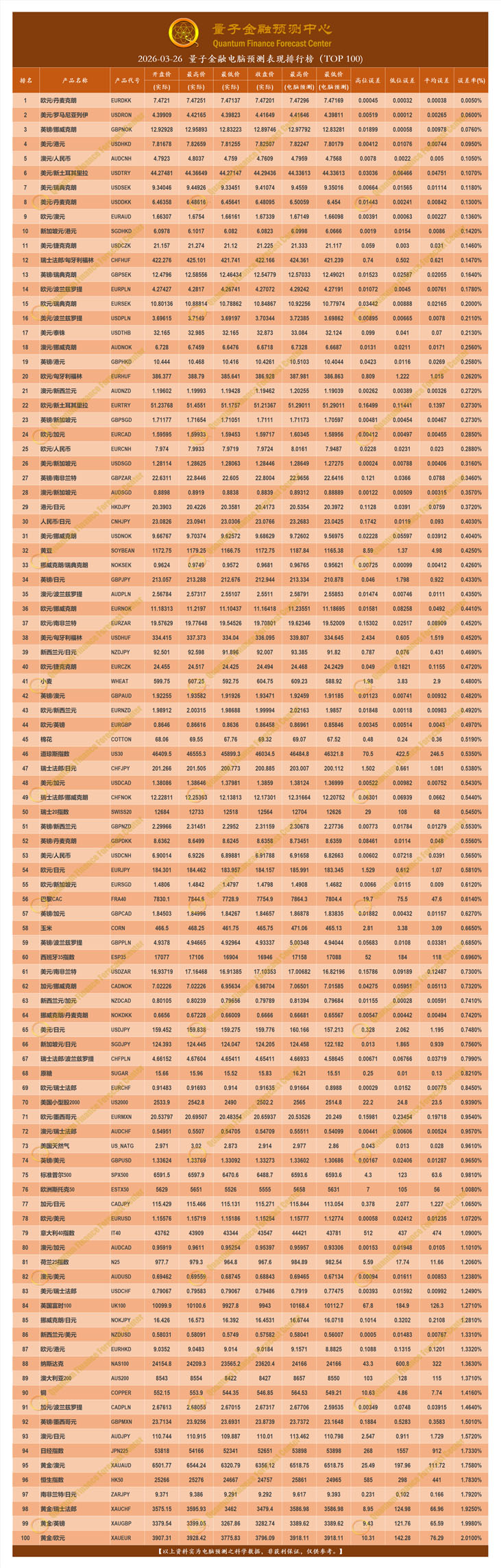 2026-03-26 量子金融电脑预测表现排行榜