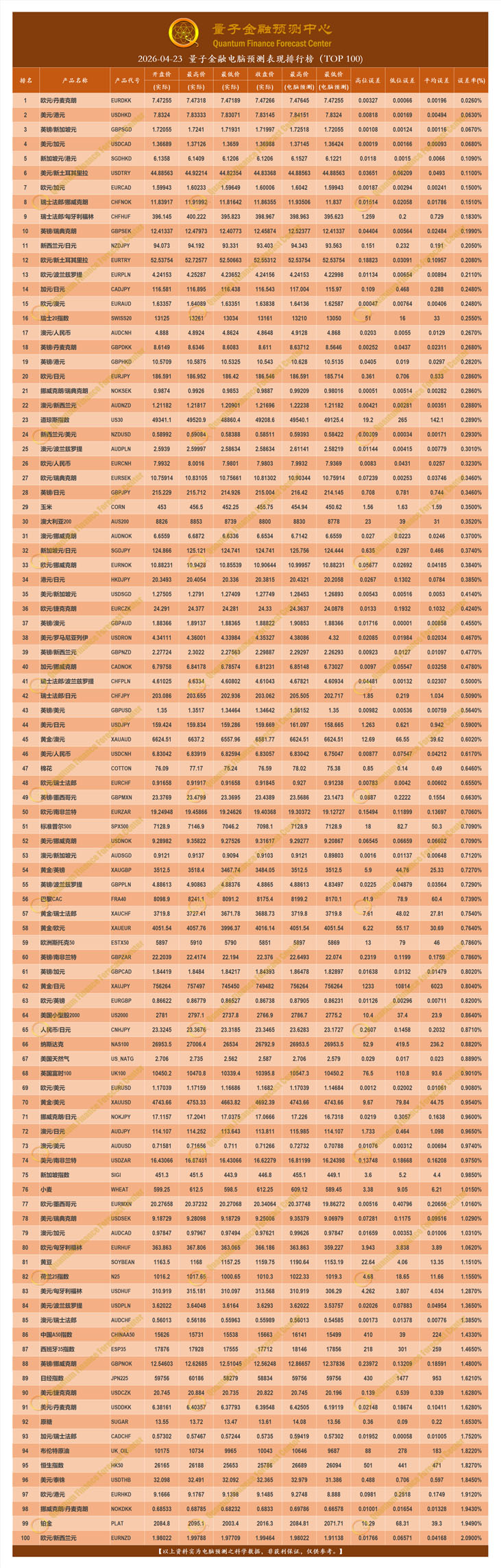 2026-04-23 量子金融电脑预测表现排行榜